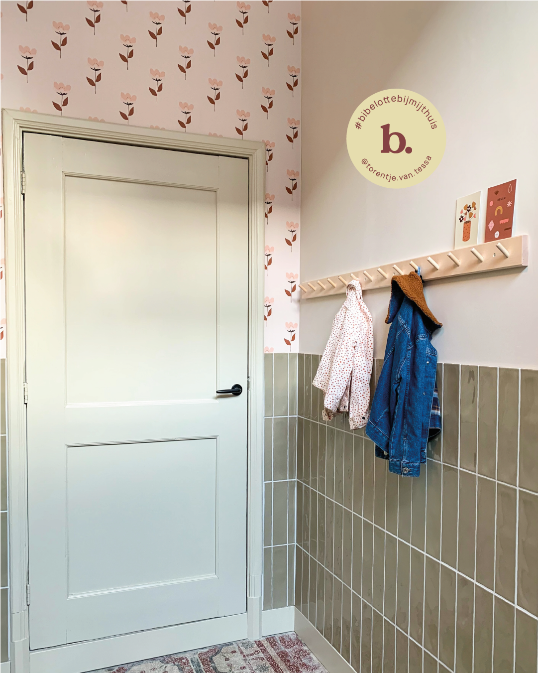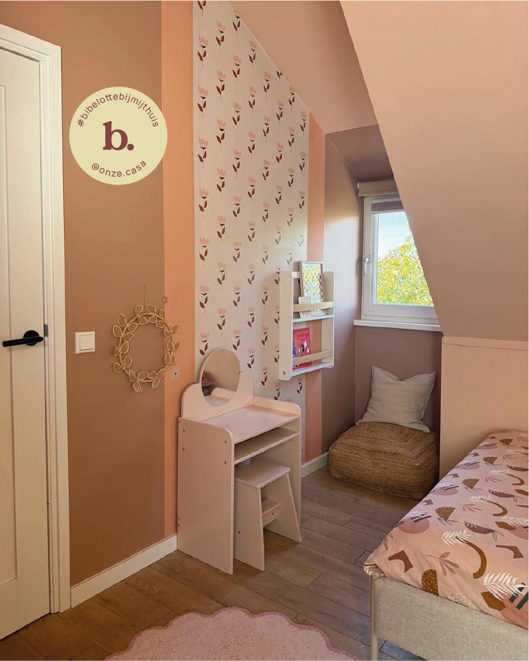 Klik hier voor 3 verfcombinaties bij behang Retrobloem roze.